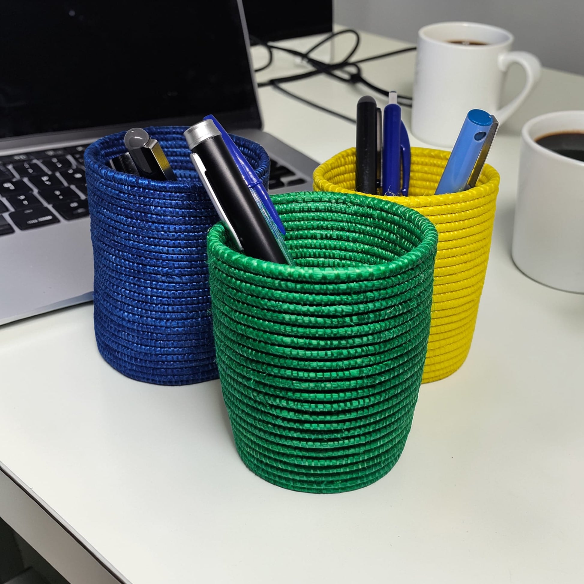 Lot de 3 Porte-stylos artisanaux faits main – Made in Rwanda | Organisation de bureau