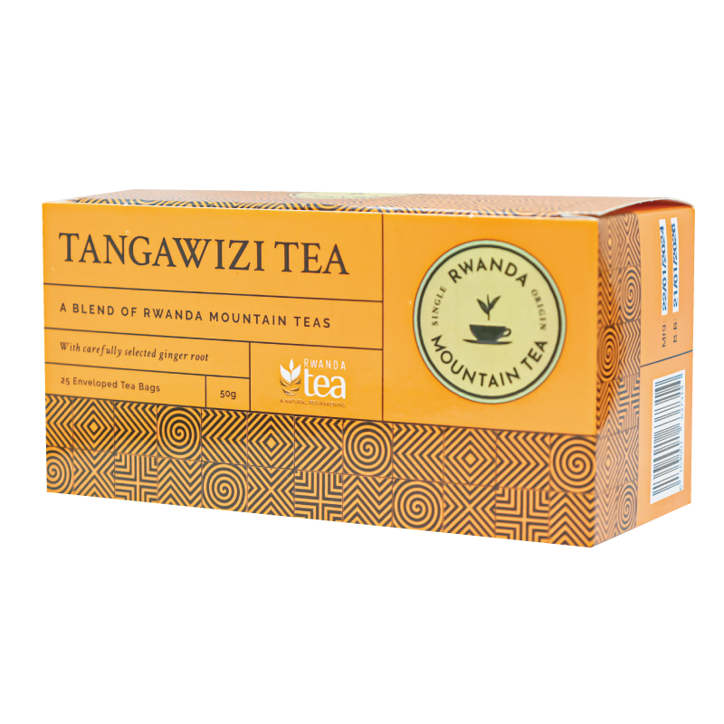 Un mélange raffiné de thé noir du Rwanda et de gingembre local 100% naturel finement coupé.